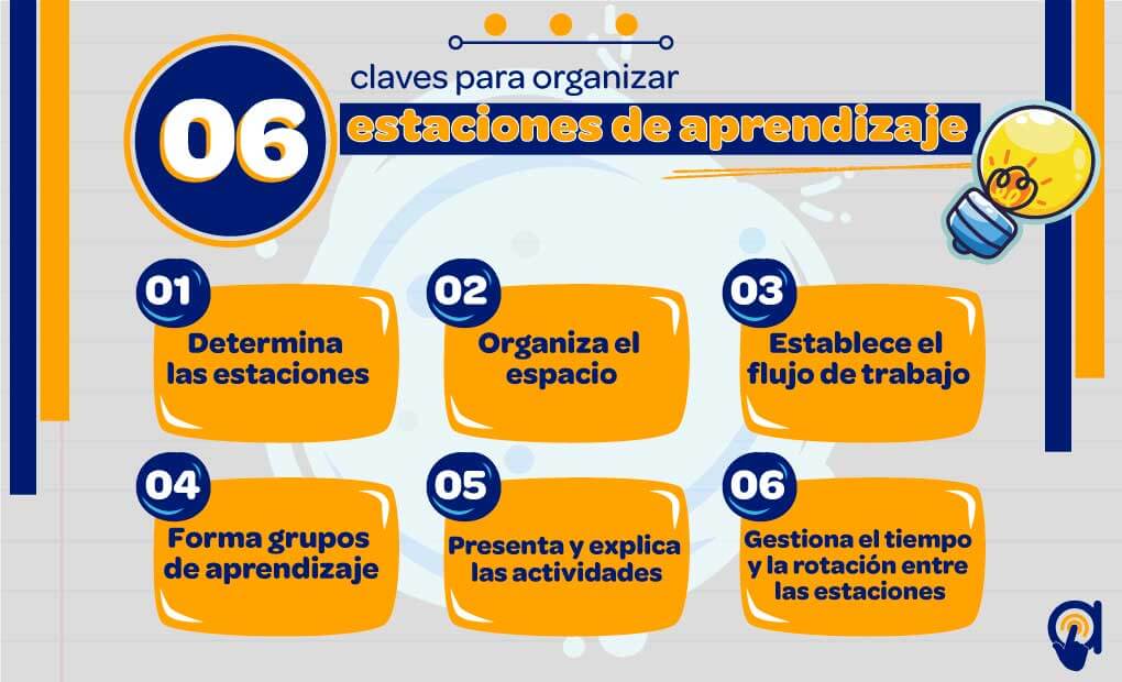 La aplicación de estaciones de aprendizaje en el aula requiere que tengas una cuidadosa planificación y organización, para que cada uno de los rincones de aprendizaje funcione de manera eficaz, maximizando la participación y el compromiso de tus estudiantes.