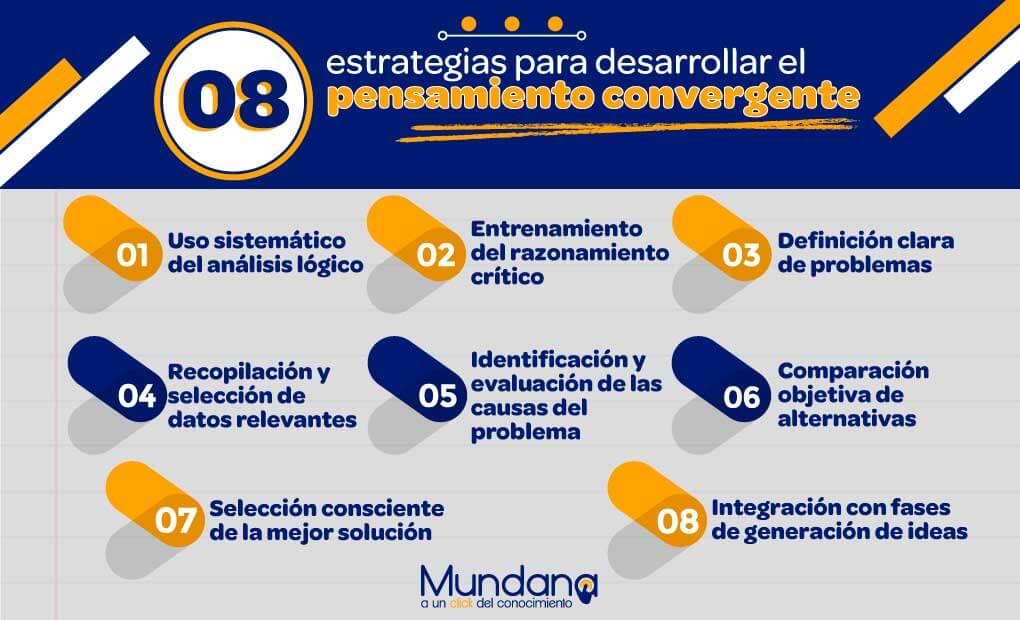 El pensamiento convergente se desarrolla de manera progresiva, a través del aprendizaje guiado y la práctica consciente; para ello puedes utilizar una serie de estrategias, entre las que se encuentran: